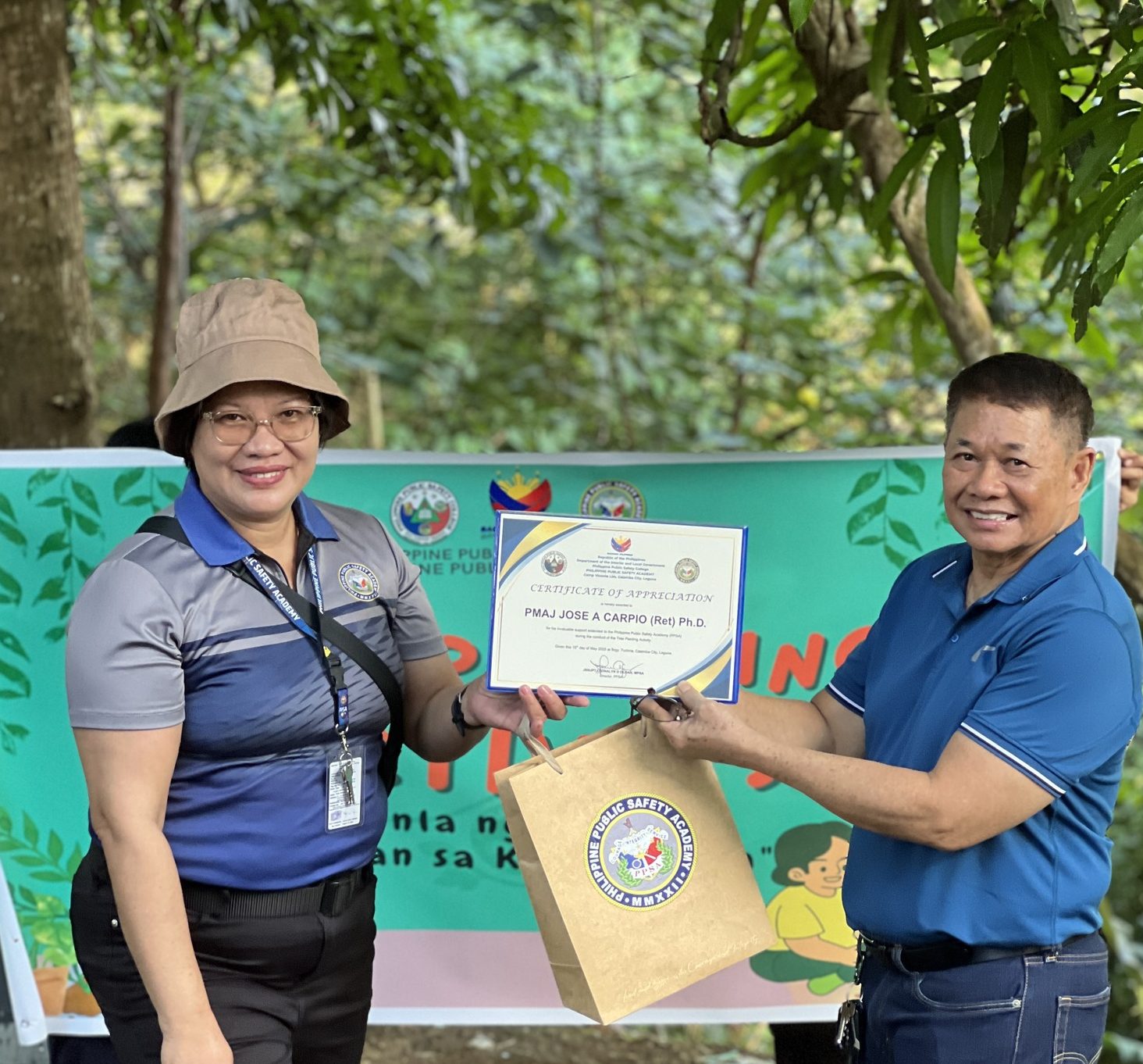 On May 15, 2025, fueled by a shared vision for a greener future, the Philippine Public Safety Academy (PPSA), spearheaded by its Director, JSSUPT LEONALYN O OLOAN, MPSA, joined forces with the local community of Barangay Turbina, Calamba City, for a meaningful tree-planting activity, an initiative for a healthier community through reforestation and environmental conservation.